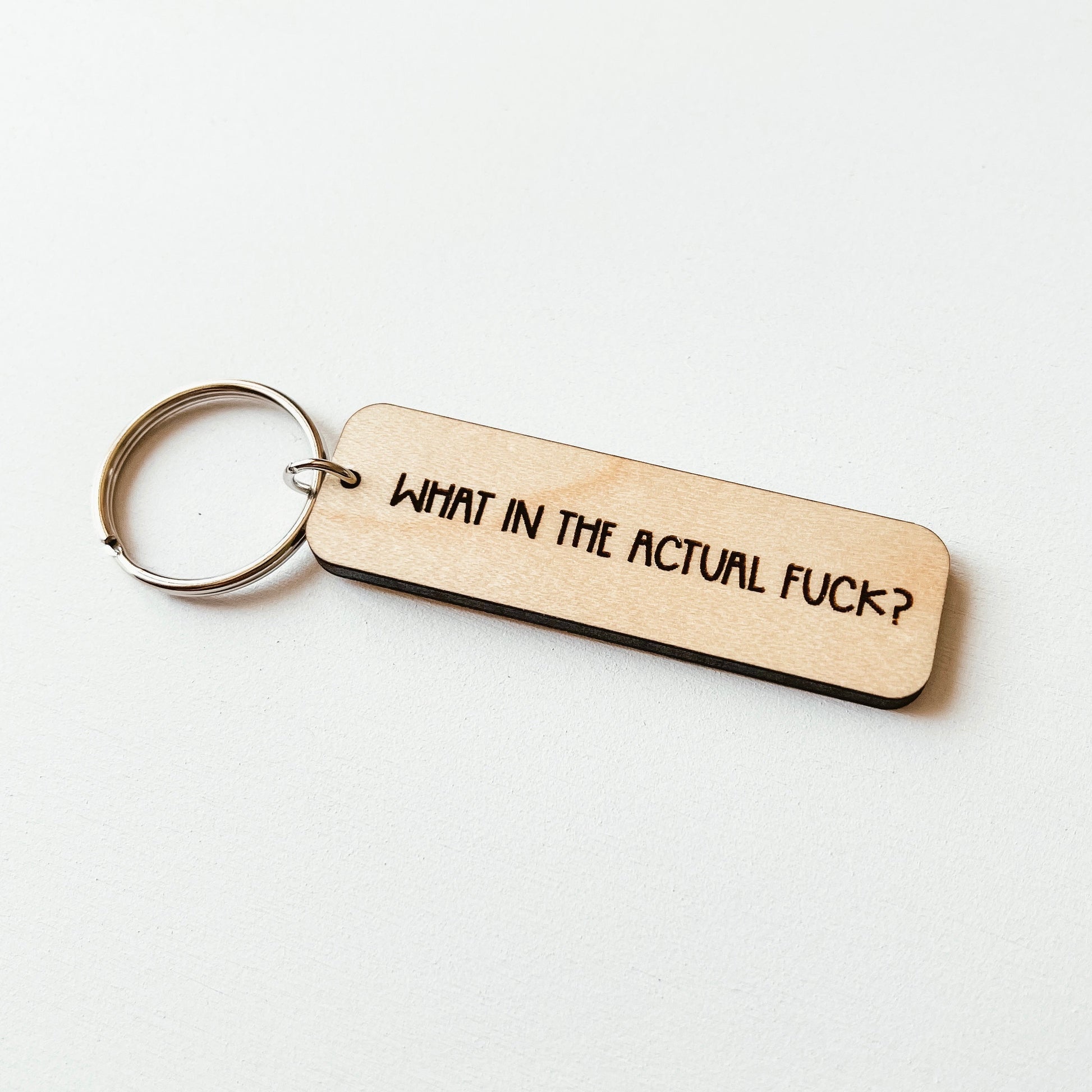 Our wooden keychains are cut from premium-grade, laminated maple and engraved with our studio laser.