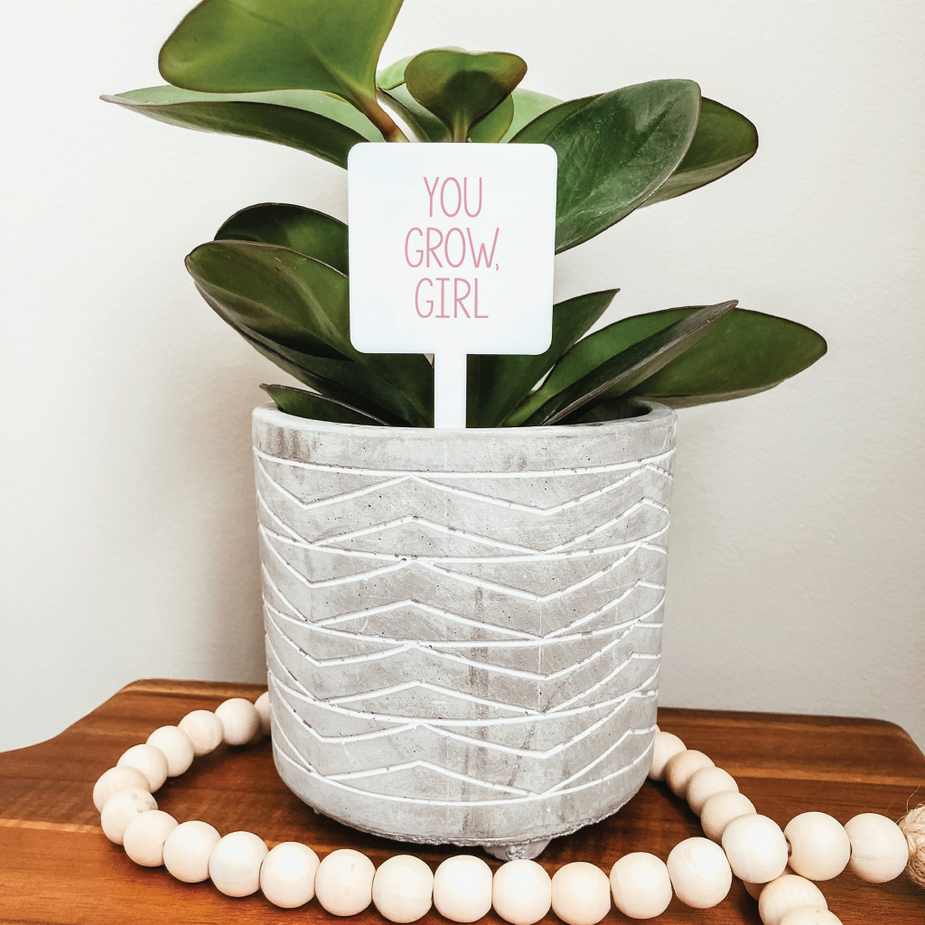 Laser cut from 1/8" thick white acrylic and printed with permanent ink. Individually packaged in a clear bag.